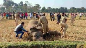 स्थानीय ग्रामीणों ने बताया कि बीती रात हाथियों का झुंड गांव के पास स्थित धान के खेतों में घुस आया था। किसानों ने फसलों को बचाने के लिए खेत की मेड़ पर 230 वोल्ट का बिजली तार लगा रखा था। इसी दौरान एक हाथी तार की चपेट में आ गया और घटनास्थल पर ही उसकी मौत हो गई।