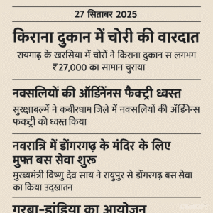 1 thought on ““किराना दुकान में चोरी की वारदात रायगढ़ – 27 सितंबर 2025 की घटना का विश्लेषण””