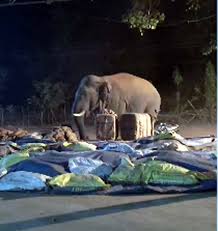 धान खरीदी केंद्र में 20 बोरे से ज्यादा धान खाया, रायगढ़ में हाथी का तांडव