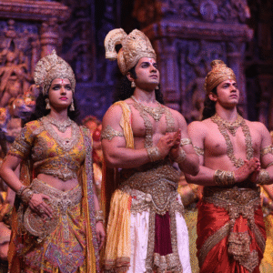 प्रतिमाएँ और वस्त्र: राम, सीता, रावण और अन्य पात्रों के वस्त्र और मेकअप बेहद आकर्षक थे।